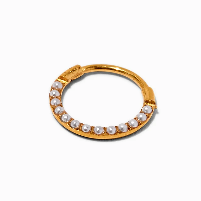 20G Gold-tone Stainless Steel Pearl Clicker Nose Hoop