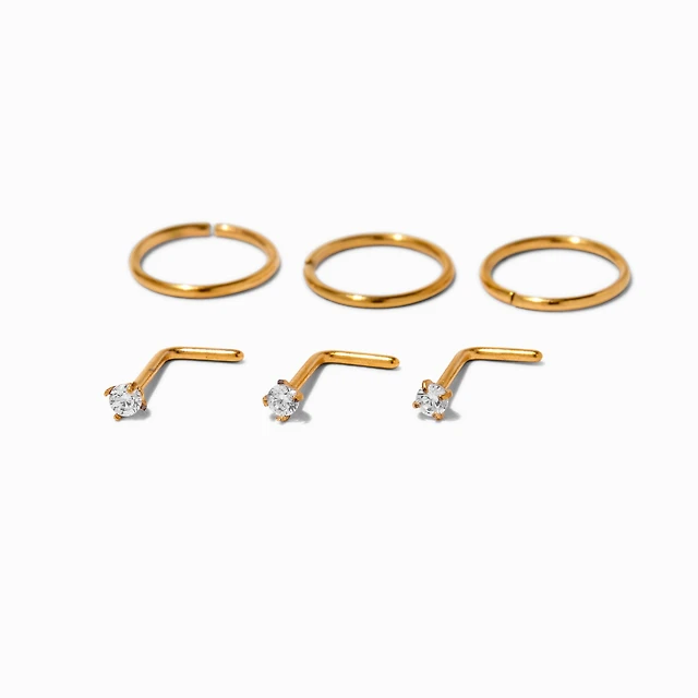 20G Gold-tone Titanium Cubic Zirconia Studs & Hoops - 6 Pack