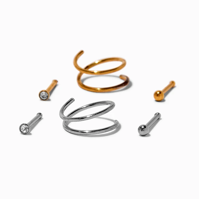 20G Mixed Metal Titanium Cubic Zirconia Nose Studs & Double Hoops - 6 Pack