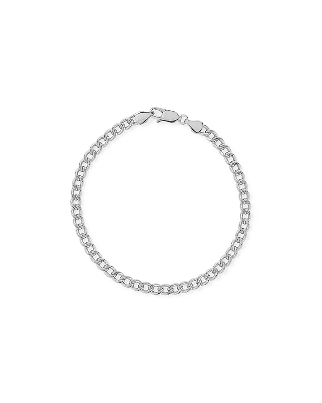 23cm (22") 4.2mm Width Semi Solid Diamond Cut Curb Bracelet in 10kt White Gold