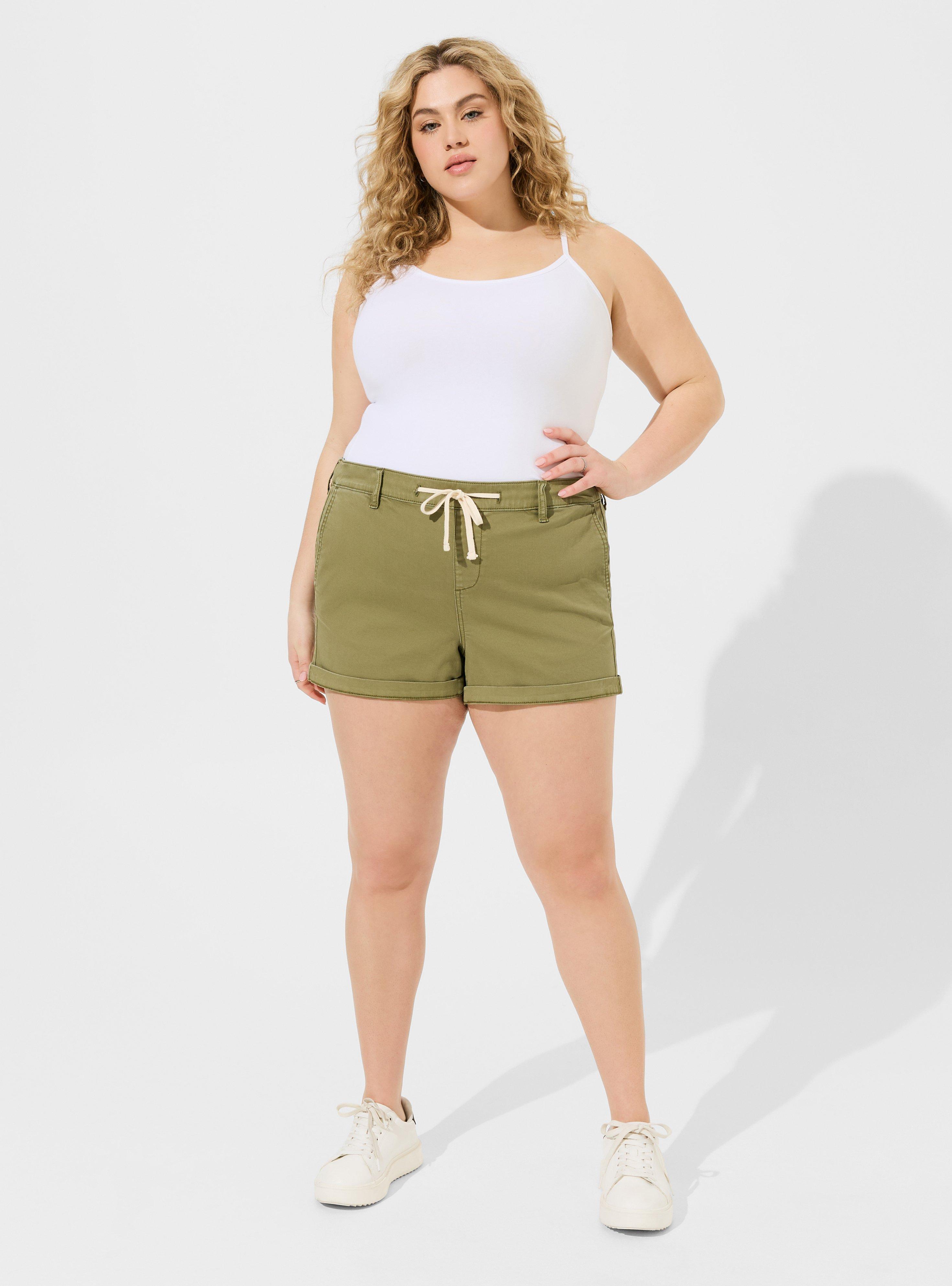 FIT Model is 5'10'' wearing size 0. Mid-rise. Measures 3.5'' inseam (size 2). MATERIALS + CARE Stretch twill woven fabric: A breathable, stretch fabric that's easy to wear and care for (machine washable!). Stretch level: Medium. 96% cotton, 4% spandex. Machine wash cold. Dry low. Imported. DETAILS Functional side pockets. Drawstring waist.