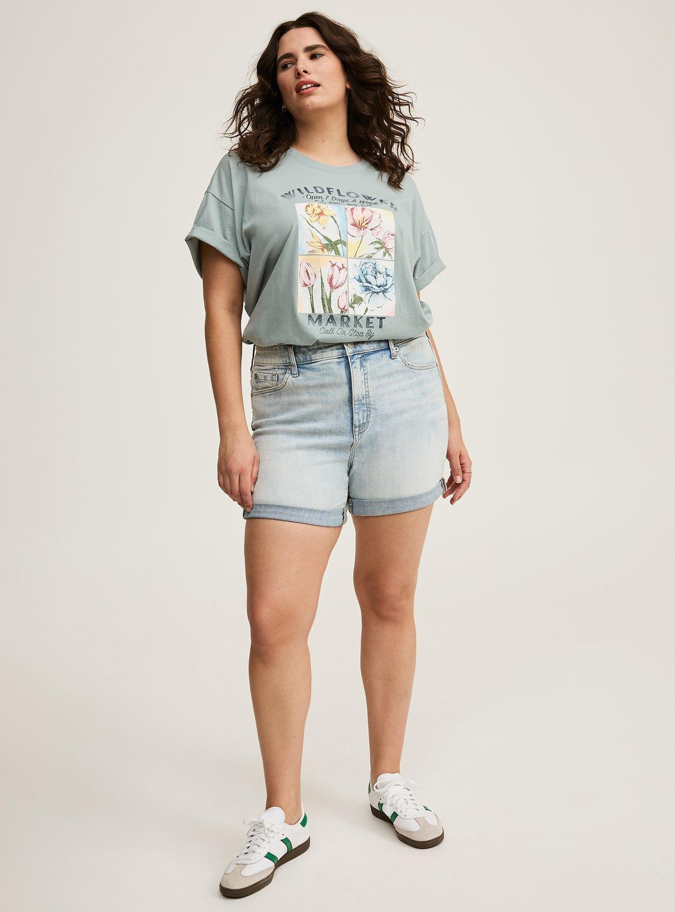 FIT High rise. Inseam: 5"" MATERIALS + CARE Vintage Stretch Denim: The feel and look of classic denim with just that perfect amount of stretch. Stretch level: Medium. 98% Cotton, 2% Spandex. Machine wash cold, inside out. Tumble dry low. Imported. DETAILS 5-pocket design.