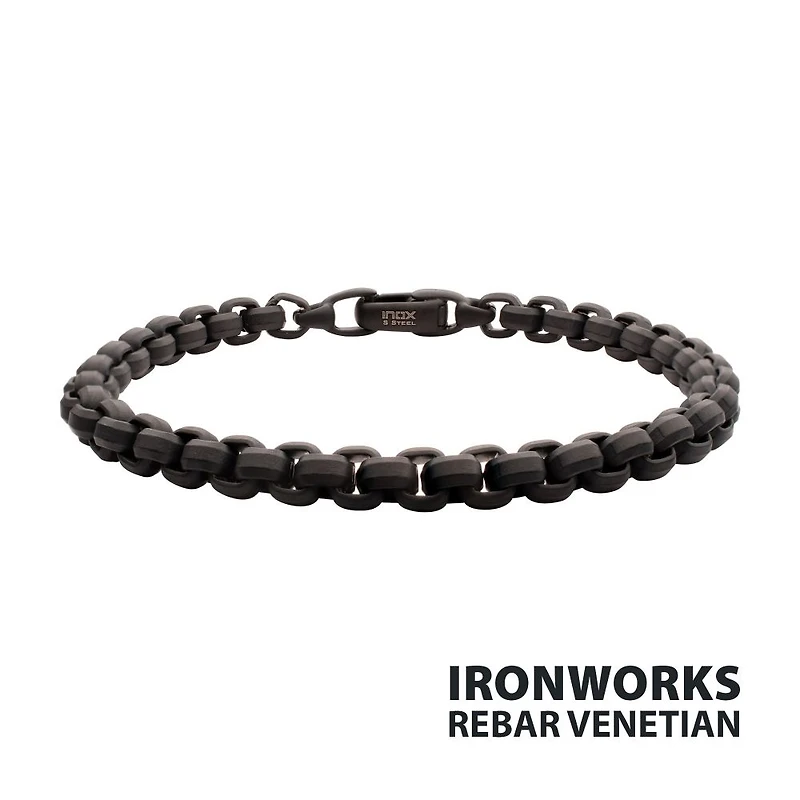 6mm Matte Finish Black IP Steel Boc Chain Bracelet 8"