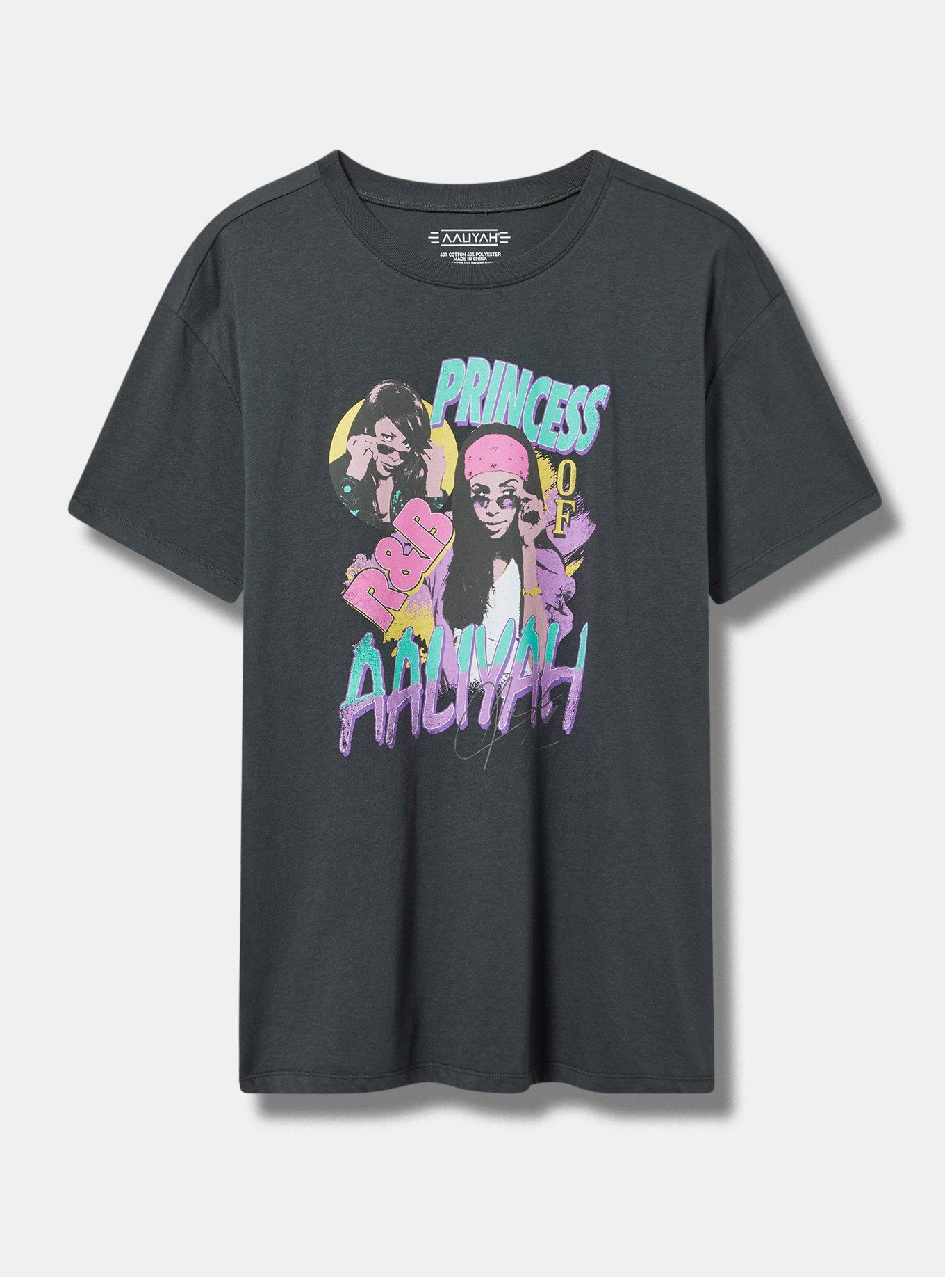 FIT Relaxed fit: A roomy fit that’s never baggy or boxy. Measures 30'' from shoulder (size 2). MATERIALS + CARE Cotton-blend knit fabric. 60% cotton, 40% polyester. Machine wash cold. Tumble dry low. Imported. DETAILS Crew neckline. Short sleeves. Aaliyah graphic.