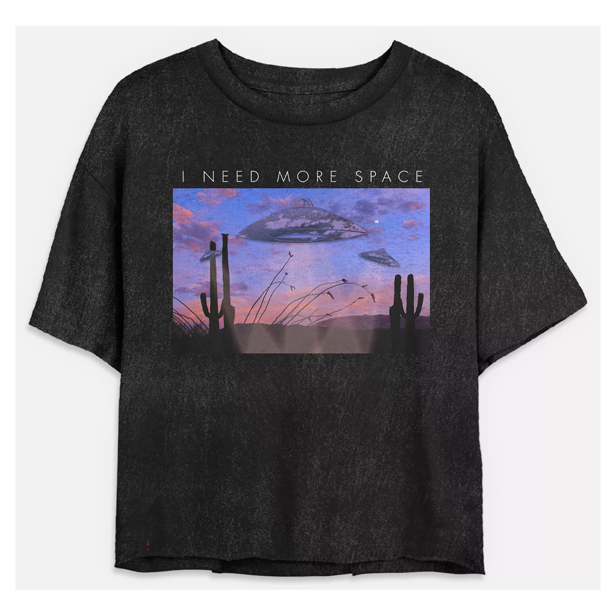 If you're at all interested in the intergalactic creatures that live in the cosmic unknown then this Alien UFO Cropped T Shirt is a must-have for your collection. With this t shirt added to your wardrobe everyone will know you believe in aliens.