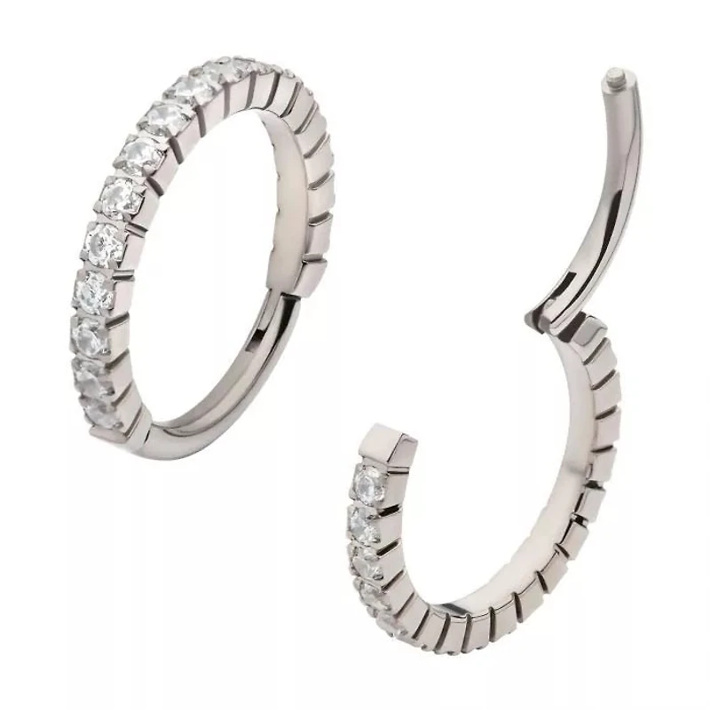 Titanium With Prong Set Full Clear Cz Side Facing Hinged Segment Clicker. Manufactured From High Polish Implant Grade Titanium (Ti-6Al-4V-Eli Astm F136).