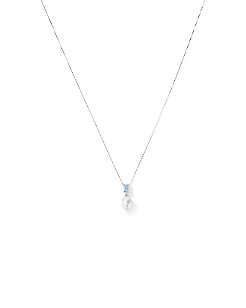 Aquamarine and Cultured Freshwater Pearl Drop Necklace in 10kt Rose Gold