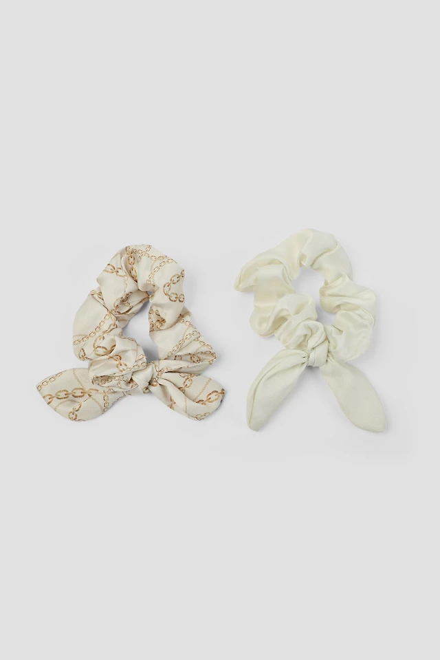 Ardene 2-Pack Bow Scrunchies in Beige