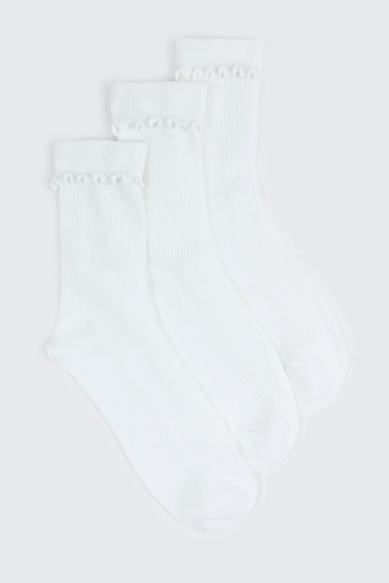 Ardene 3-Pack Lettuce Edge Crew Socks in White | Polyester/Spandex