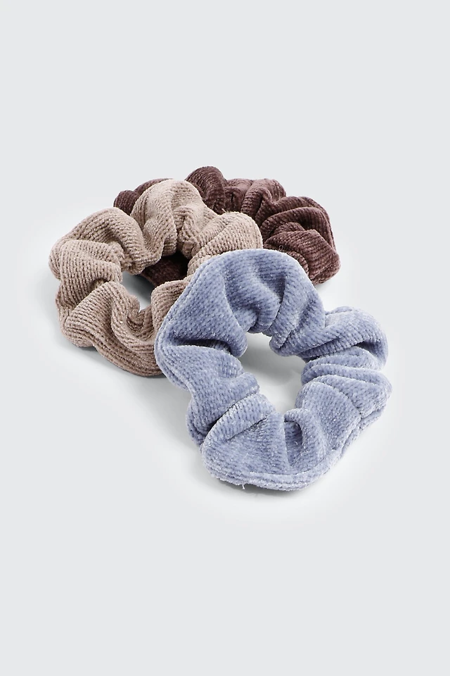 Ardene 3-Pack Velvet Scrunchies in Medium Blue | Polyester/Elastane