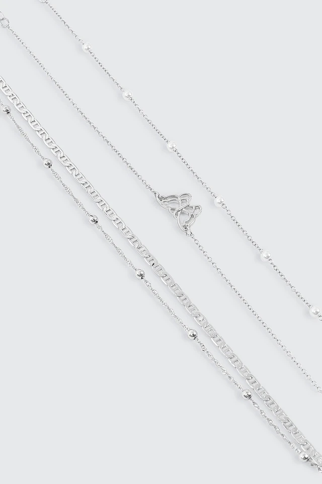 Ardene 4-Pack Chain Anklets wit Butterfly in Silver