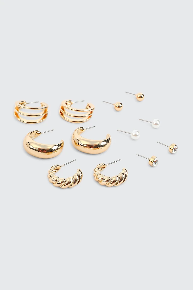 Ardene 9-Pack Hoop and Stud Earrings in Gold | Stainless Steel | Eco-Conscious
