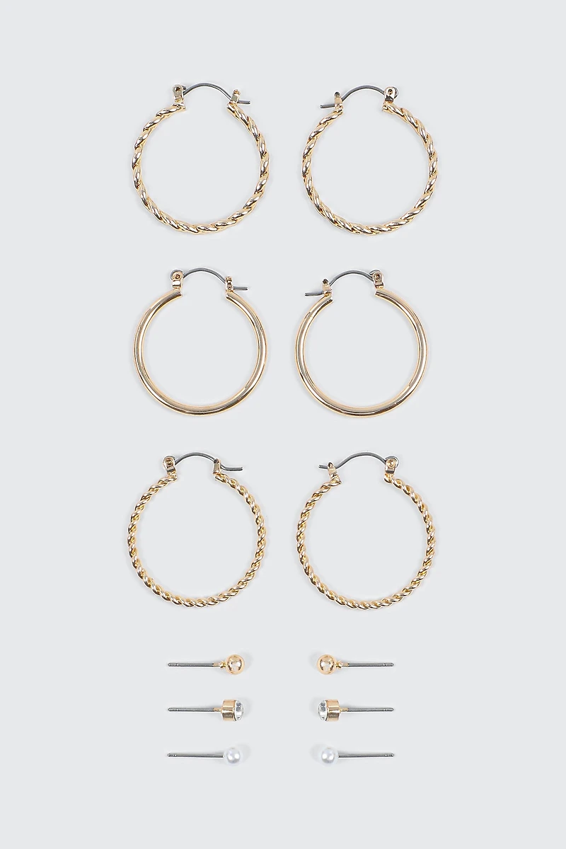 Ardene 6-Pack Twisted Hoop & Stud Earrings in Gold | Stainless Steel