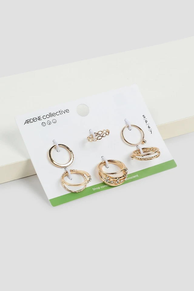 Ardene 6-Pack Assorted Sea Rings in Gold | Size