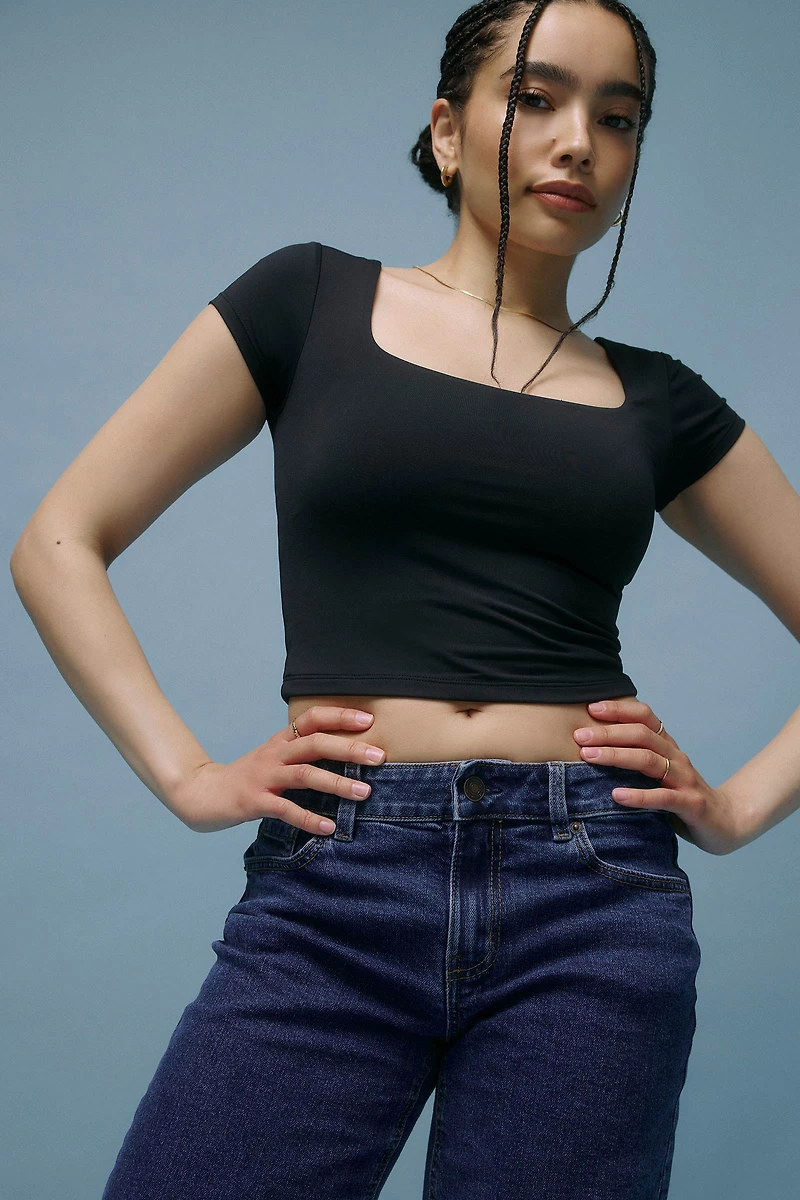 Ardene Contour Ultra Crop Square Neck T-Shirt in | Size | Elastane/Polyamide