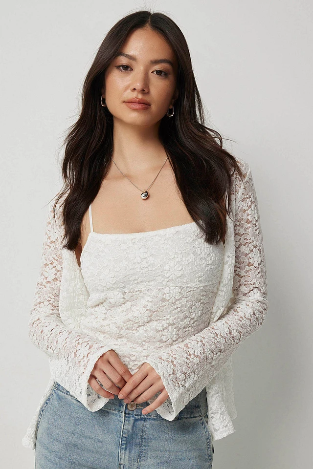 Ardene Kids Long Sleeve Top with Lace Tank in White | Size | Polyester/Cotton/Elastane