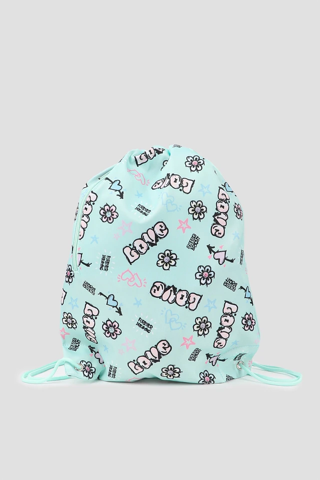 Ardene Kids Printed Drawstring Bag in Light Blue