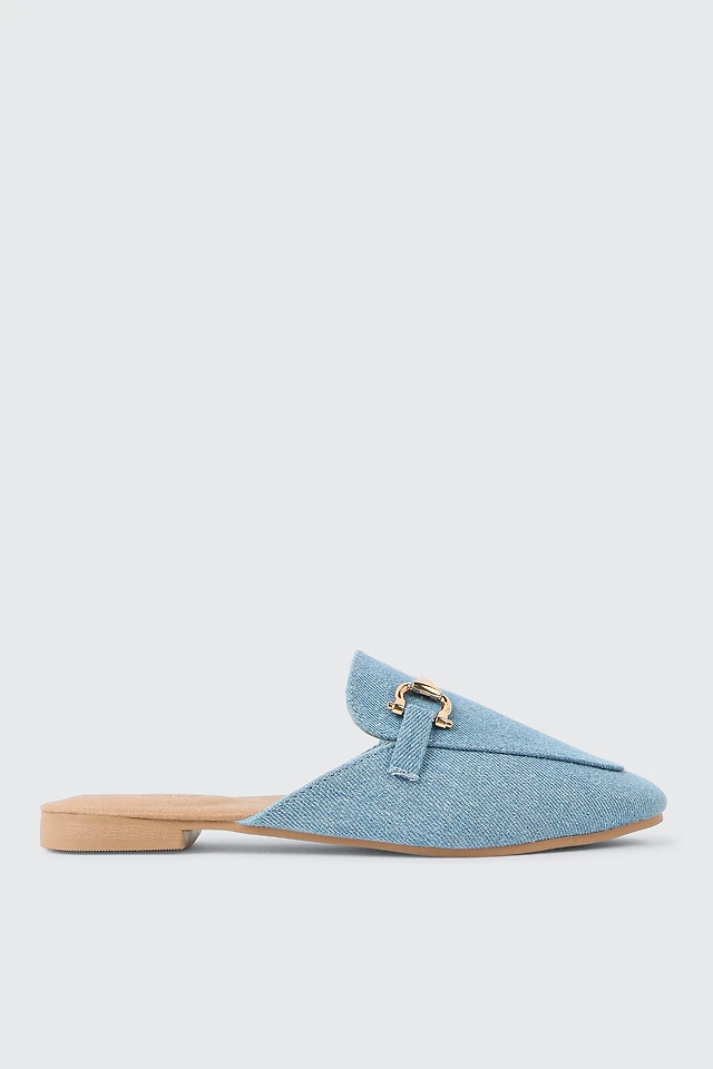 Ardene Mules with Gold Buckle in Light Blue | Size | Eco-Conscious