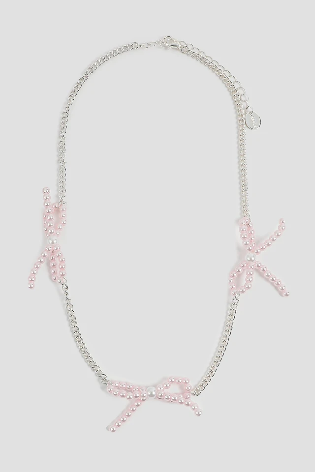 Ardene 14K White Gold Plated Bow Necklace in Silver