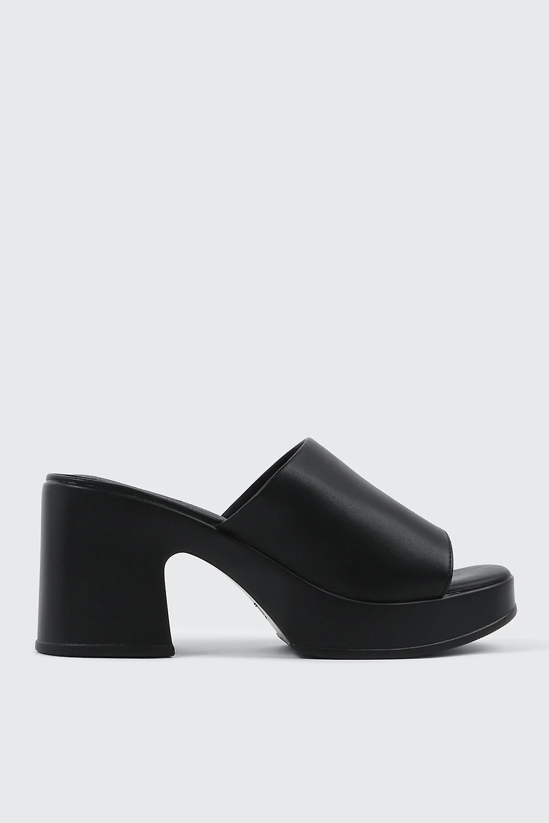 Faux leather sandals. Square toe Upper: polyurethane Lining: textile Outsole: TPR | Ardene Platform Slides in Black | Size 6 | Faux Leather