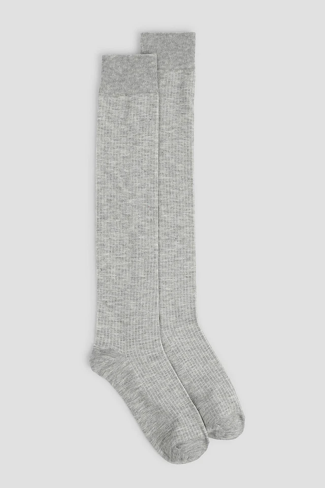 Ardene Ribbed Over-the-Knee Socks in Light Grey | Polyester/Spandex