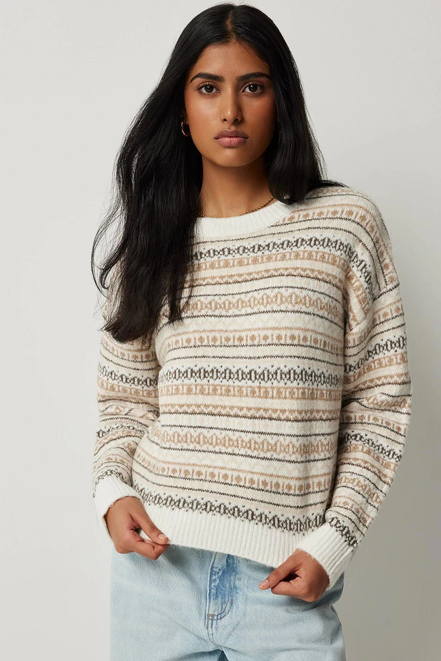 Ardene Fair Isle Sweater in White | Size | Polyester/Elastane