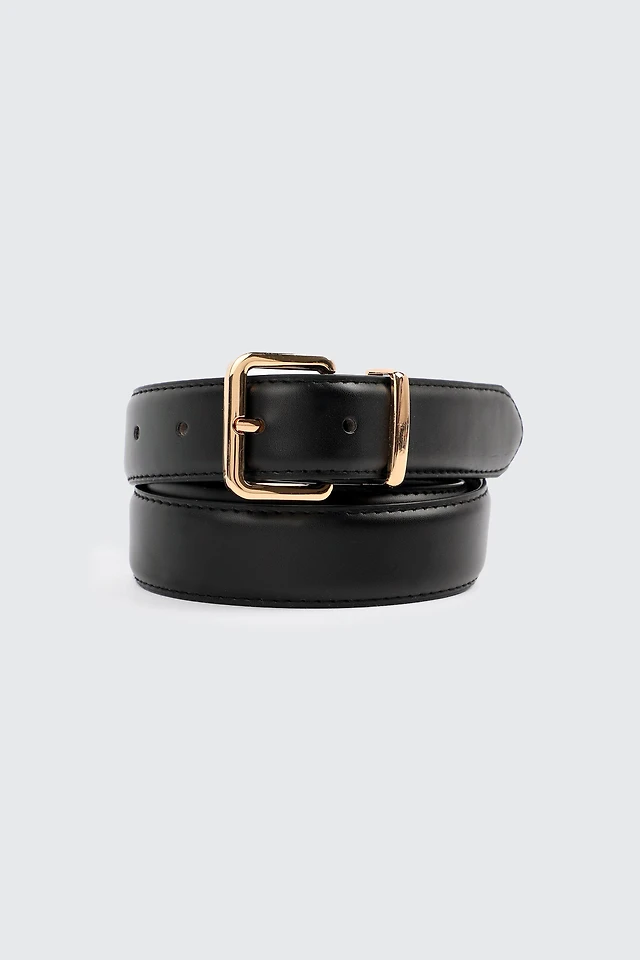 Ardene Gold Buckle Belt in Black | Size Small | Faux Leather