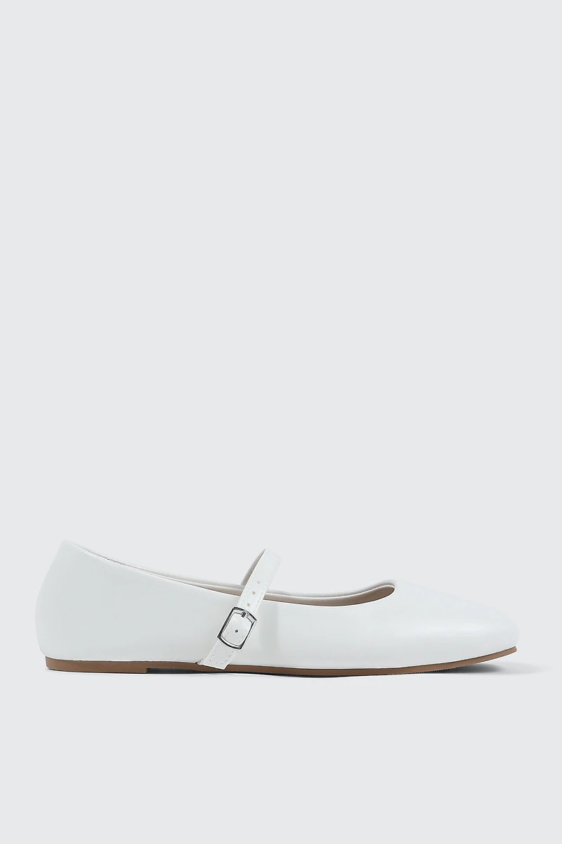 Flat shoes. Square toe Adjustable strap Upper: polyurethane Upper:faux suedeLining: textile Comfort foam insole TPR outsole | Ardene Square Toe Mary Jane Flats in White | Size 6 | Faux Suede