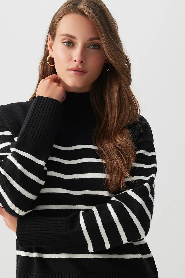 Ardene Striped Mock Neck Sweater in Black | Size Small | Polyester/Nylon/Viscose