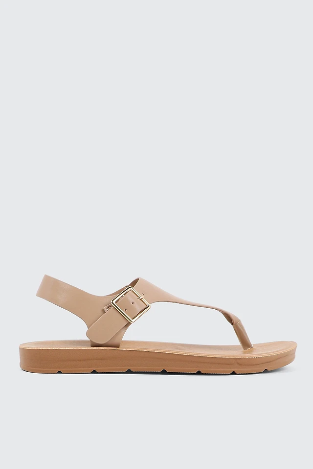 Ardene Toe Loop Flat Sandals with Chunky Buckle in Beige | Size | Faux Leather | Eco-Conscious