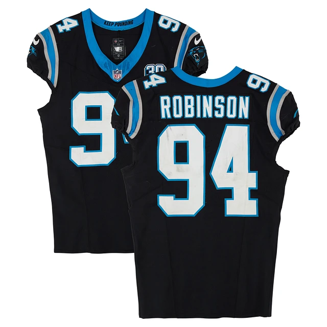 A'Shawn Robinson Carolina Panthers Game-Used #94 Black Nike Jersey vs. Arizona Cardinals on December 22, 2024
