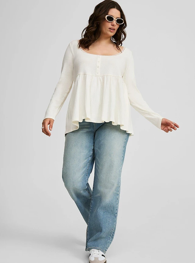 Vintage Slub Scoop Neck Tiered Babydoll Top