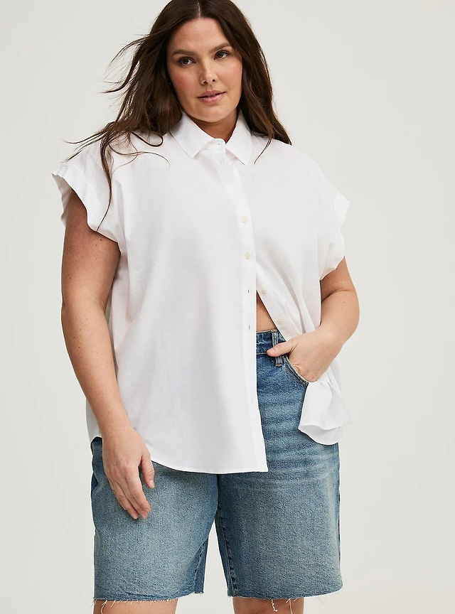 Grommet Placket Top & Studded Straight-Leg Jeans