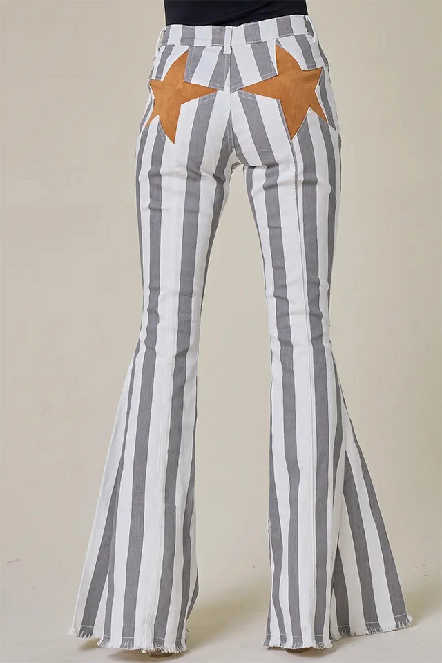 Back Suede Star Striped Flare Denim