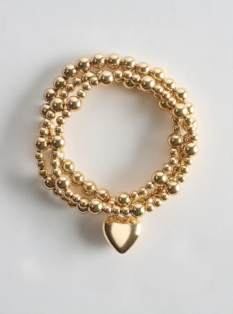 MATERIALS + CARE Man-made materials. Imported. DETAILS High shine finish. Beaded design with heart charm.