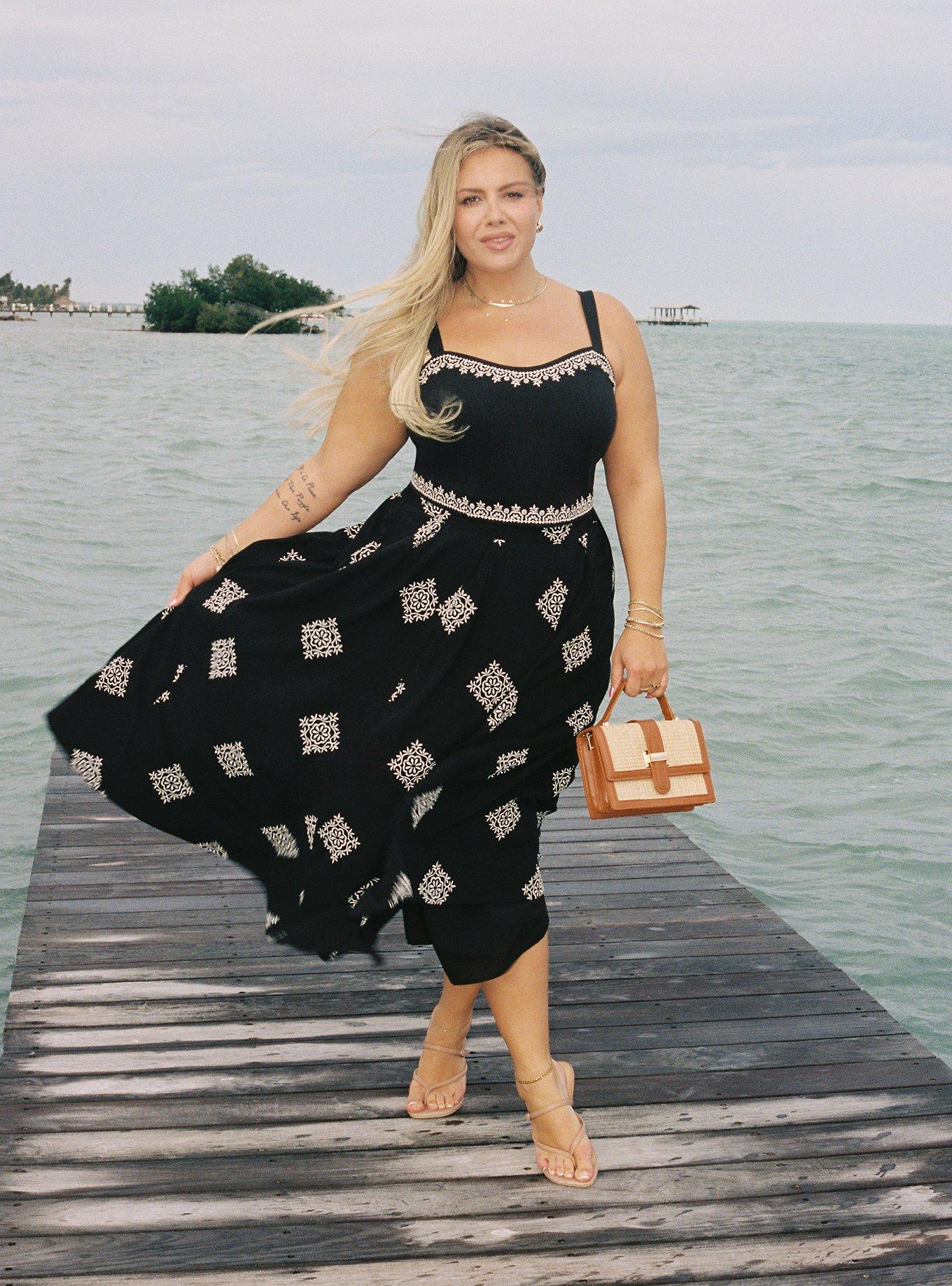 Matching Style(s): Search 43847677 FIT Measures 48'' from shoulder (size 2). MATERIALS + CARE Cotton-blend woven fabric. 55% cotton, 45% rayon. Machine wash cold, inside out. Tumble dry low. Imported. DETAILS Elastic back waistband. Embroidered details. BELLE ISLE Pretty in the park. Classic by the coast. Fresh, feminine and always effortless. Belle Isle makes getting dressed a celebration. AS SEEN ON @MUSINGSOFACURVYLADY & @DYLLANMOXIM