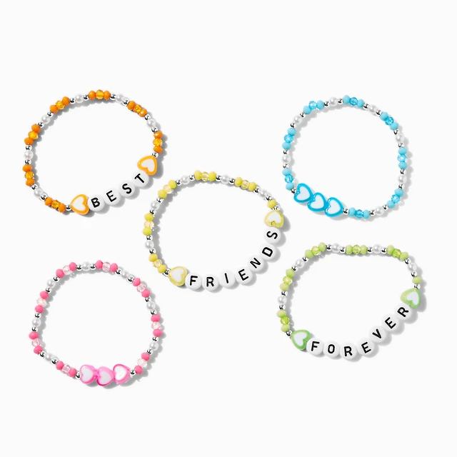 Best Friends Neon Heart Seed Bead Stretch Bracelets - 5 Pack