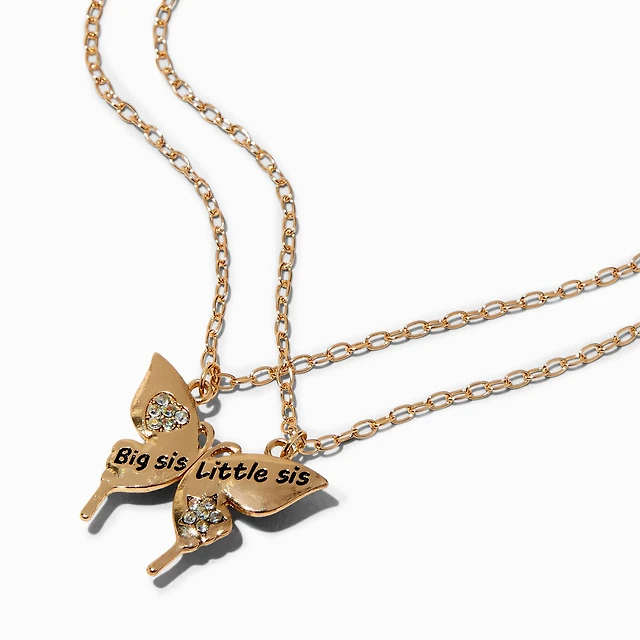 Big Sis & Little Sis Split Butterfly Pendant Necklaces - 2 Pack