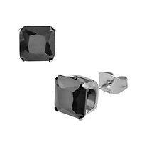 Unisex Stainless Steel Black, Square Cubic Zirconia Studs. Available Sizes: 4mm.