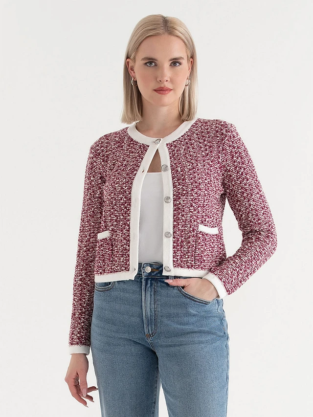 Collarless Bouclé Jacket & Bouclé Pencil Skirt