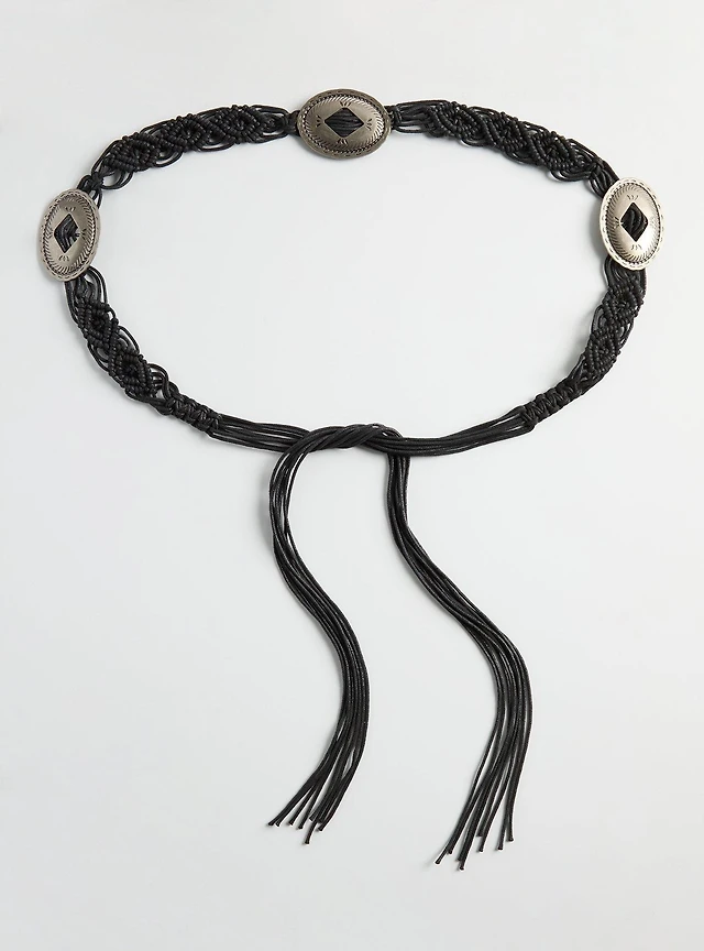 Ardene Braided Western Waist Belt in Black | Size Small