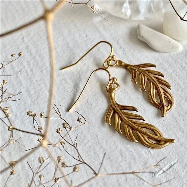 Livistona Raw Brass Palm Frond Drop Earrings Raw Brass