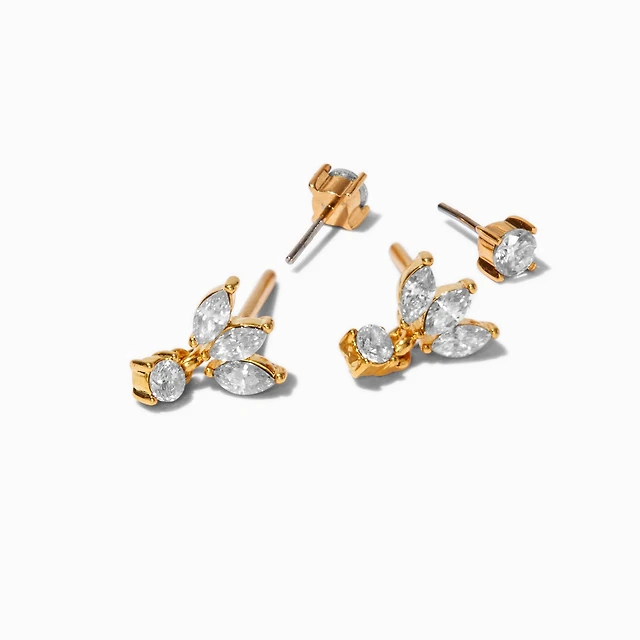 C LUXE by Claire's Gold-tone Titanium Cubic Zirconia Marquise Reversible Flat Back Stud Earrings