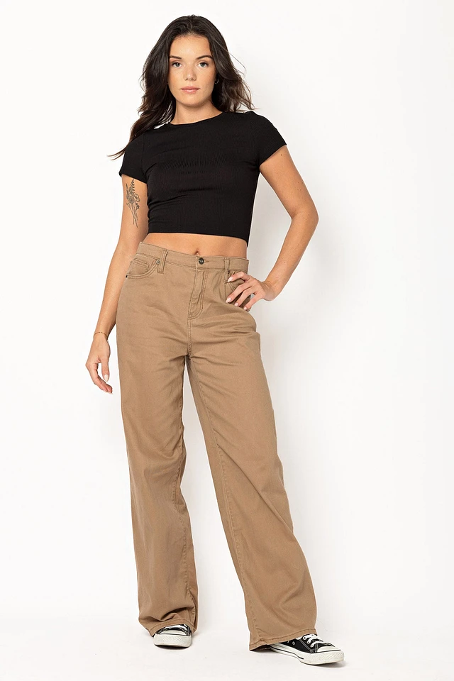 Ardene Flowy Twill Wide Leg Pants in Beige | Size | Polyester