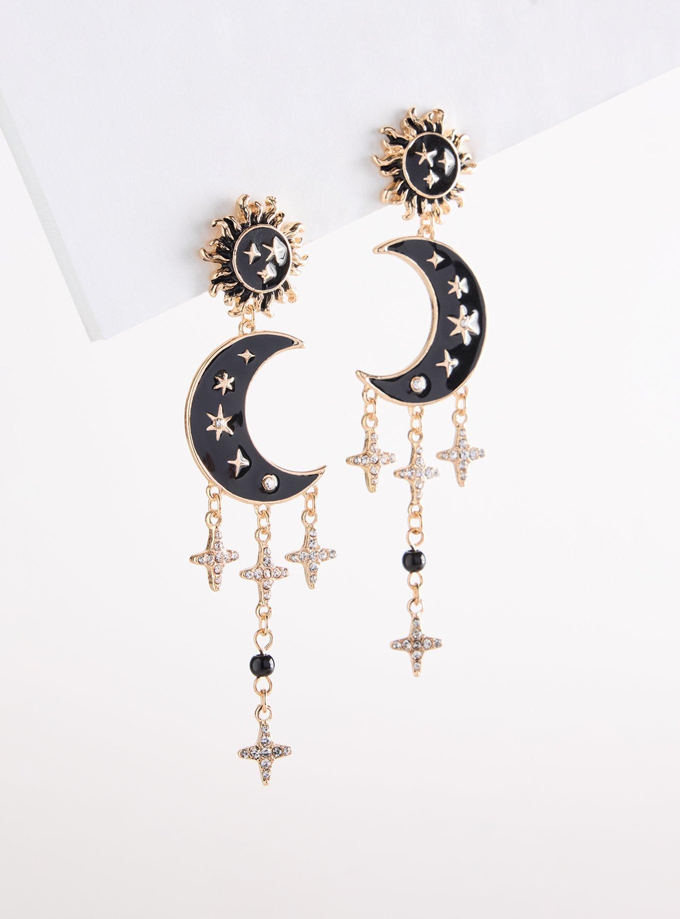 MATERIALS + CARE Man-made materials. Wipe clean with cloth. Imported. DETAILS High shine finish. Celestial designs. Rhinestone embellishments.