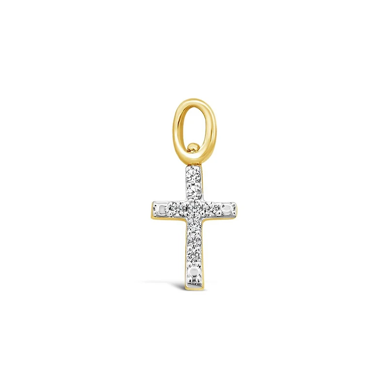 Elevate your spiritual style with our 10K yellow gold cross charm, adorned with exquisite diamonds. Designed for seamless mixing and matching, this versatile charm allows you to create a unique and meaningful jewellery collection. Pair it with our matching Charmables cross earrings to make a graceful statement of faith and elegance in any outfit.