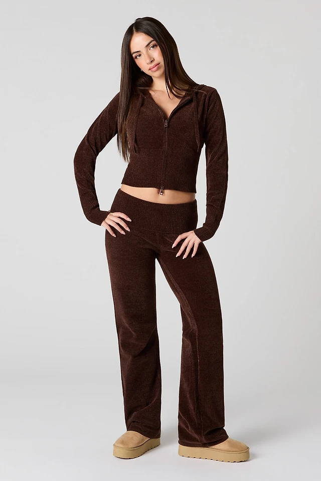 Chenille Knit Foldover Flare Pant