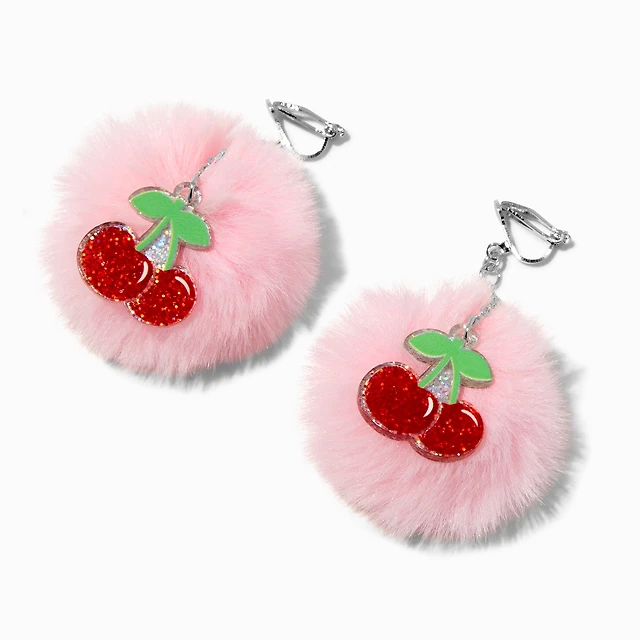 Cherry Pom Pom Clip-On Drop Earrings