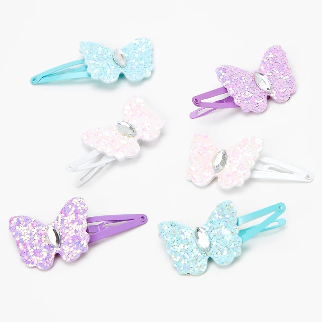 Claire's Club Glitter Butterfly Snap Hair Clips - 6 Pack