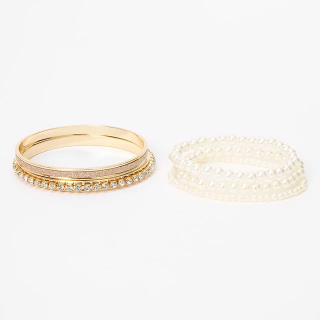 Claire's Club Gold-tone Bangle & Pearl Stretch Bracelet Set - 5 Pack